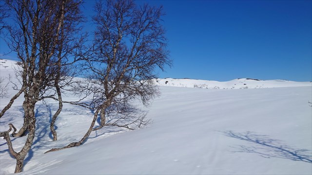Det ble en fin og varm tur denne dagen. Det har blitt noen turer denne sesongen, og det er fremdeles mulig med skitur noen dager til. Derfor ble det noen cacherutlegg i dag. Dette var ett av dem. Her har det de siste årene tidvis kjørt spor i et lita ekstrasløyfe etter passering Koven. Cachen er lett å finne der den henger i et tre. Ta med eget skriveredskap.