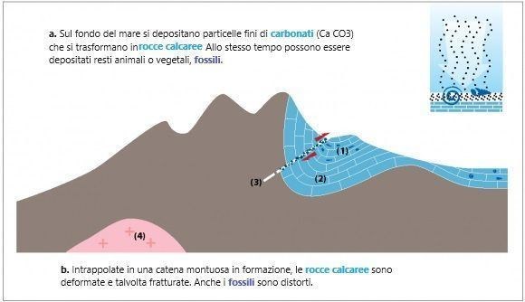 Formazione di una catena montuosa: (1) calcari debolmente deformati