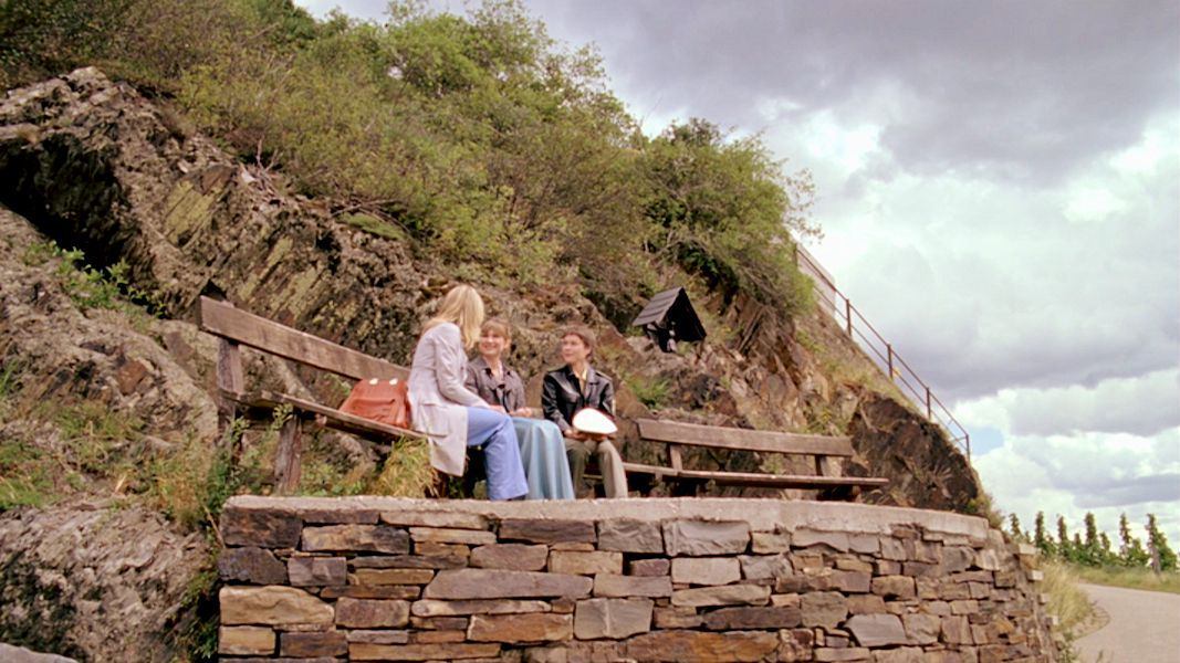 Szene: Sofie Haas und Bärbel Schmied befragen die Weinkönigin zum "Dernfelder Schieferchen".