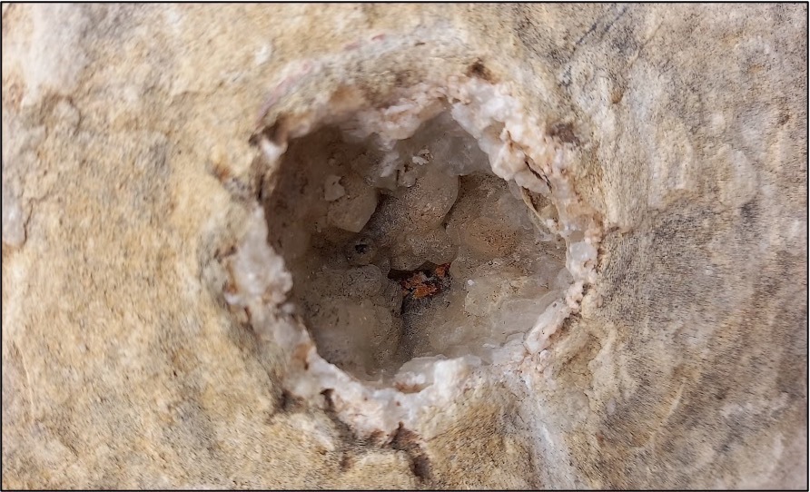 1) ¿De qué color son los cristales de calcita encontrados? (blancos, transparentes, amarillos).