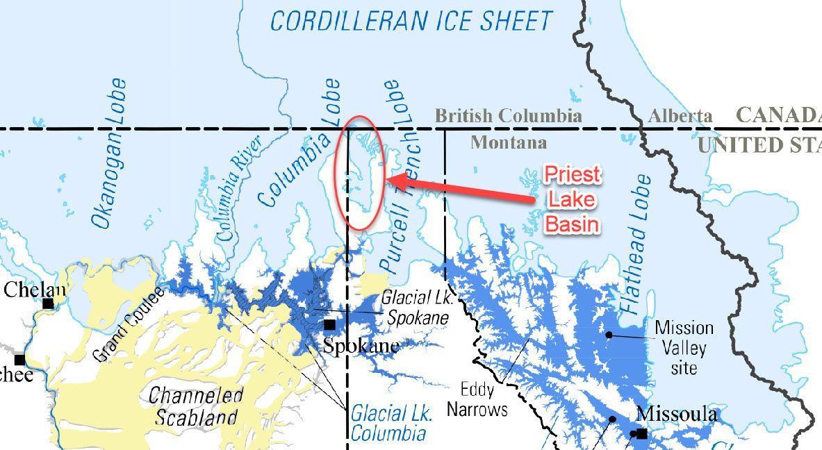 Between 10,000 and 15,000 years ago, one of the last of the great continental glaciers covered much of North Idaho. This massive glacier was called the Cordilleran ice sheet. A finger of it flowed down the valley created by the primordial Priest River and scoured the valley floor. It left striking U-shaped valleys like that seen forming the Upper Priest River Valley, and rounded and smoothed hilltops like Camels Prairie and Horton Ridge.