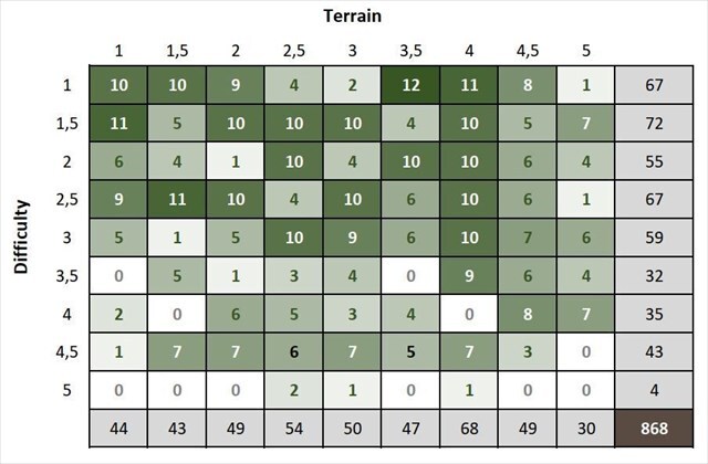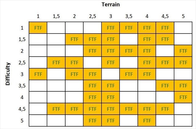 - každá ulovená soutěžní keš je bodována jedním bodem bez ohledu na její kombinaci D/T