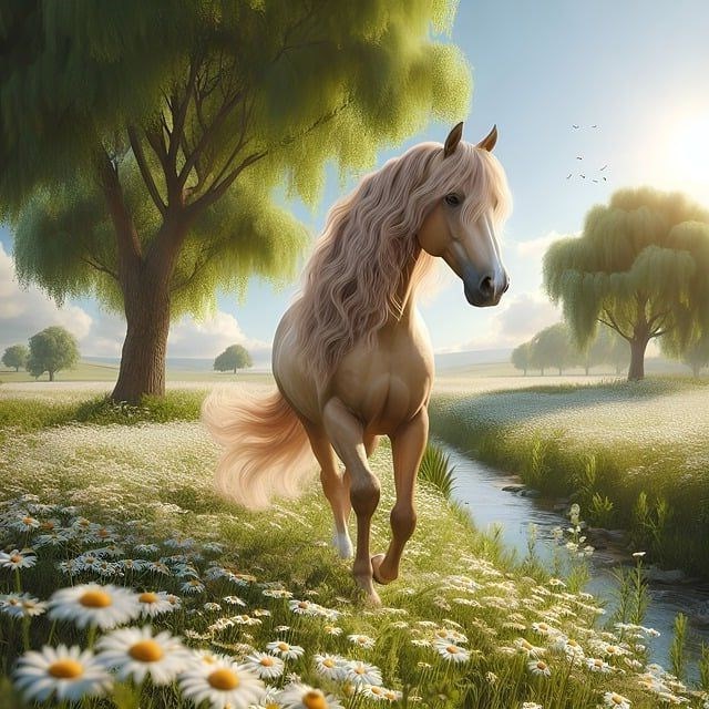 Skinfaxe is a horse who draws the dawn across the sky in Norse mythology. His name means "shining mane," and he is known for his bright, almost radiant mane that brings the dawn to the world. Skinfaxe plays a crucial role in the transition from night to day, symbolizing light and new beginnings. His radiant mane is a symbol of the fresh start of a new day.