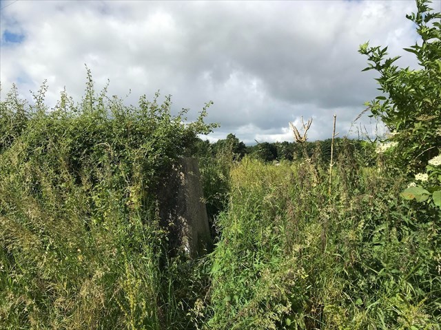 Parked roadside just along from the field entrance. Only a short walk, following the hedge line along the wide field margin, from there to the pillar. About 90m all told. The pillar is well hidden in the hedgerow growth.