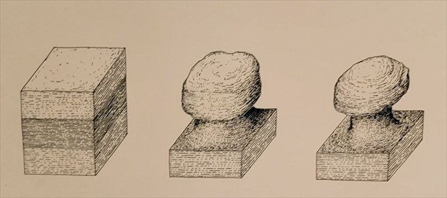 1: Describe the layers that make up this mushroom rock. Please include height/width/color.