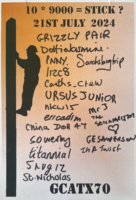 Oh and if that wasn't enuff, help celebrate the return of the stick from its holidays, as we carry out a maintenance run on the cache that lives here. Giving you a chance to see a professional stick returner at work, and affording you the opportunity to sign and claim a find, if you haven't already, without having to climb ladders or similar.