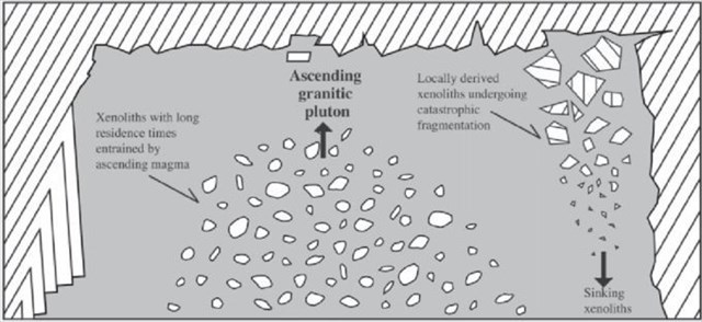 Magmatik kayaçlar soğumuş magma ve lavlardan oluşur. Ksenolitler genellikle magmatik kayalara gömülü olan farklı kaya türleridir. Yabancı kaya malzemesine, magma veya lavın bileşimine, sıcaklıklara, mevcut zamana ve diğer birçok faktöre bağlı olarak ksenolit, ana kayayla değişen derecelerde kimyasal olarak dengelenir.