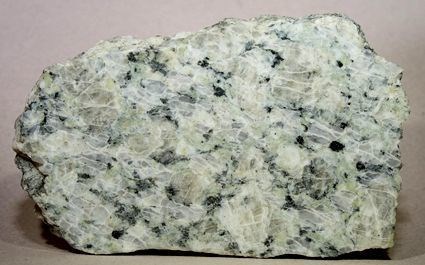 These crystals give the rock a grainy, uniform appearance. This is granitic rock - whether it is granite, granodiorite or another related rock depends on the relative proportion of the individual minerals. A good example of such a rock is the Mont Blanc granite.