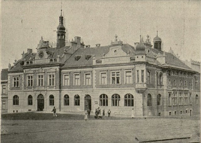 V roce 1898 byla jmenována komise pro výstavbu nové budovy radnice, která v roce 1900 nechala vypsat architektonickou soutěž. Stavební požadavky určily, že se má jednat o jednopatrovou rohovou budovu s průčelím do náměstí a věží v nároží. V budově se měly nacházet místnosti pro městský úřad, které by byly odděleny průjezdem od místností pro hostinec. Měl zde být zakomponován i taneční a divadelní sál. Stavba měla být koncipována ve stylu české renesance. Soutěž obeslal architekt Josef Brzák, který byl oceněn čestným uznáním a dále technická kancelář M. Hatiny a M. Křivánka s návrhem novobarokního charakteru. První cenu ovšem získal návrh stavitele Bohumila Libanského, který měl být rozpracován. Z neznámých důvodů ale bylo další pokračování projektu zastaveno.