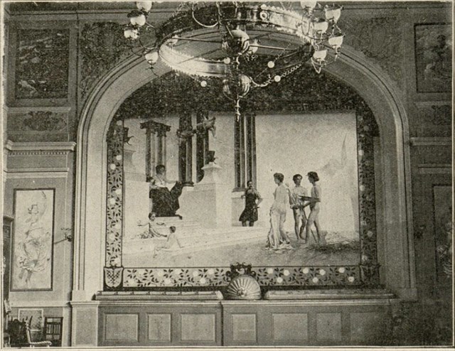 Do divadelního sálu se vstupuje vedlejším vchodem ve vstupním průčelí, které vede chodbou k šatnám, k schodišti k balkónkům a předsálí. Z něj se vstupuje třemi vchody krytými závěsy v zadní stěně sálu. Jeho stěny jsou artikulovány rytmem obdélníkových oken v přízemí a štukových pilastrů posazených na sokl z tmavě hnědého dřevěného obložení. Na ně je posazena profilovaná kordonová římsa se zubořezem a další úzký pás, jehož lizény navazují na linie pilastrů. Na něj dosedají půlkruhové výklenky s klenáky, ve kterých jsou vyvedeny malby. Tmavé obložení u paty sálu spolu s okenními závěsy a poprsní jeviště kontrastuje s bledě oranžovými plochami a horizontálními liniemi v bledě modré barvě na horní části stěn. Pilastry jsou ozdobeny reliéfní štukovou výzdobou a jsou osazeny svítidly. Volné plochy v rozích u jeviště zabírají malby. V zadní stěně tvořila linie pilastrů s oblouky rámec půlkruhových balkónů s železným dekorativním zábradlím, ve kterém byly umístěny lože. Po stranách středního oblouku byly medailony s portréty Josefa Slavíka a Beneše z Hořovic. Na protilehlé straně má jeviště předsazenou předscénu, na kterou vede po levé straně úzké schodiště. Jeho portál je zvýrazněn vertikálně bledě modrou barvou. Vně oblouku elipsoidní výseče jsou vyvedeny bohaté štukové reliéfy. Na jeho vrchol byl pak vsazen znak v rokajovém rámci. Sál využíval nejen Spolek divadelních ochotníků, ale často sloužil pro plesy a taneční zábavy. V roce 1911 bylo do sálu zavedeno elektrické osvětlení. V roce 1937 bylo upraveno jeviště.