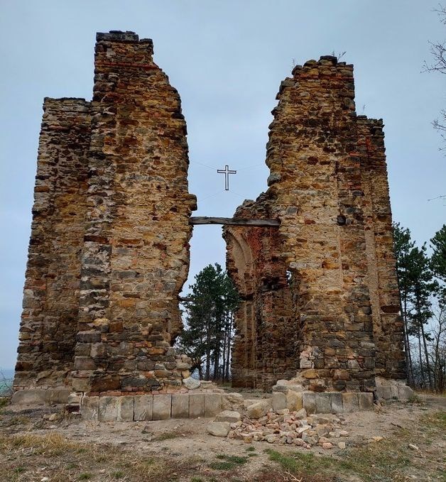 Zřícenina kaple Povýšení sv. Kříže. Pozůstatky barokní sakrální stavby, která byla zbudována v roce 1714. Jednalo se o orientovaný kostel s křížovým půdorysem, který byl zařazen mezi památkově chráněné objekty. Dodnes se podařilo dochovat pouze nárožní části obvodového zdiva.