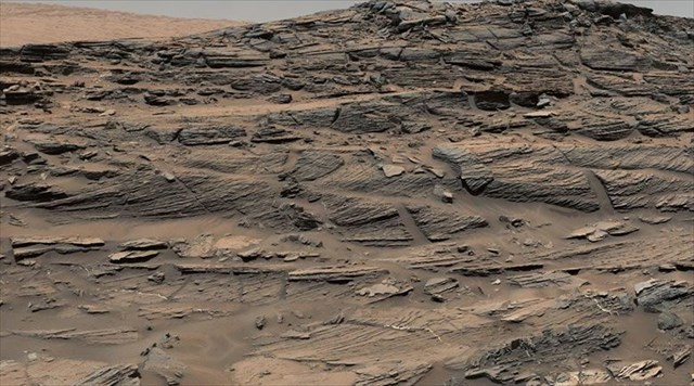 Porém, as deduções sobre a existência de água em Marte têm as mesmas considerações que as que são aplicadas para o planeta Terra, isto é, são igualmente deduzidas pelas litologias e geomorfologias típicas que lhe estão associadas. Ora, em 2012 o Mars Rover Curiosity teve a feliz oportunidade de fotografar em Marte um segmento de rocha muito semelhante a um conglomerado, conforme ilustrado na imagem da esquerda em comparação com um comum conglomerado fotografado na Terra na imagem à direita.