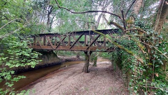 Suivre le sentier sur 130m puis monter sur la butte de la voie qui vous amènera au pont.