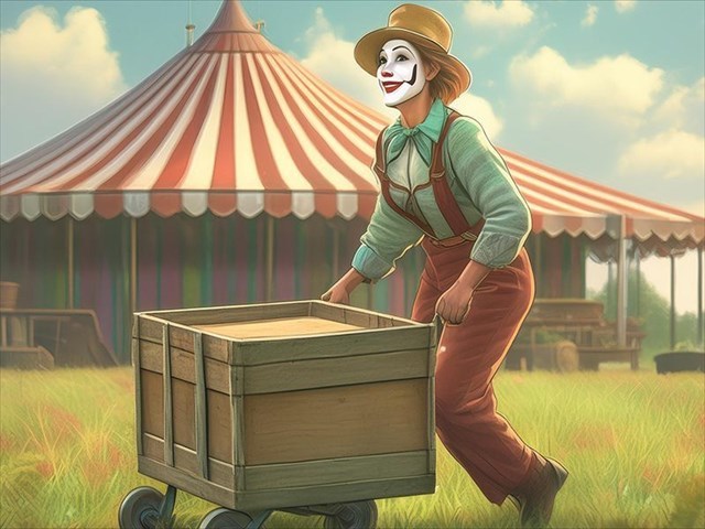 Under the bright lights and frenzied applause, I take the floor, dressed in my harlequin outfit. "Welcome to the circus games! Tonight we have a very special guest. Look around, this crowd is just waiting for you to get started."