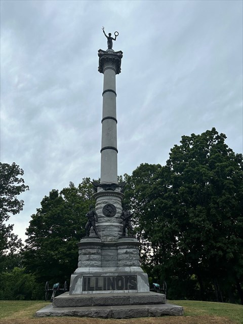 The Illinois Monument on Missionary Ridge commemorates the troops from Illinois who fought in the Battle of Missionary Ridge on November 25, 1863. This battle was a pivotal part of the Chattanooga Campaign, during which Union forces, led by Major General Ulysses S. Grant, launched a decisive attack against the Confederate Army of Tennessee. The Union's successful assault forced the Confederate forces to retreat into Georgia, marking a significant turning point in the Civil War and opening the path for the Union advance into the Deep South.
