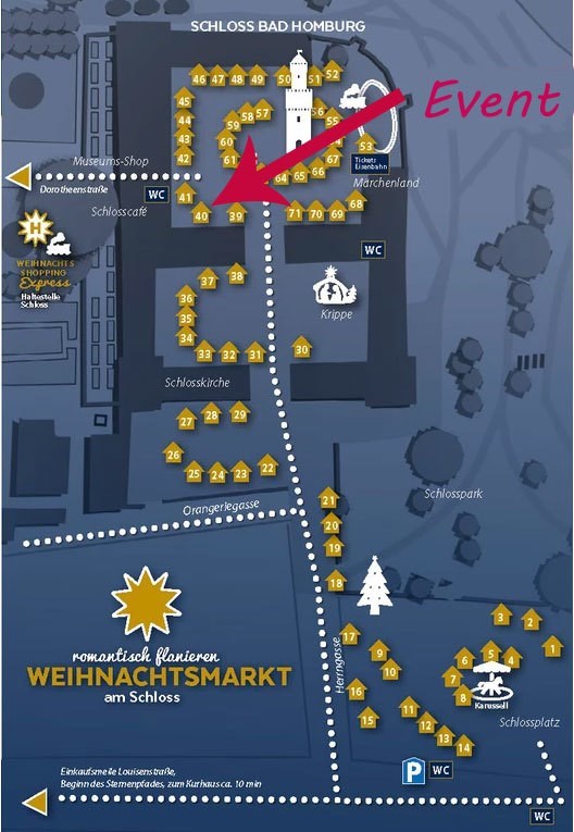 öffentliche Verkehrsmittel: Mit dem RMV könnt Ihr vom Bahnhof zur Haltestelle Markt oder Kurhaus (siehe Wegpunkte) fahren und von dort in wenigen Minuten zum Event gehen.