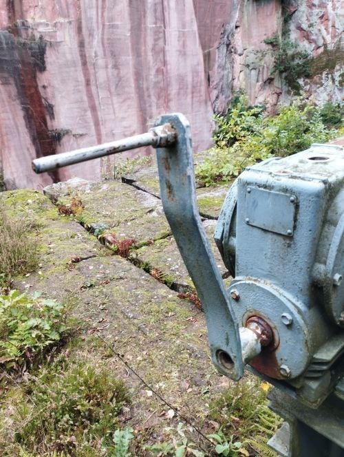 Das Seil an der Maschine war definitiv nicht dazu da, Porhyrblöcke aus dem Bruch zu heben ... dafür gab es die Kräne hier. Ihr müsst jetzt allerdings etwas kreativ und erfindungsreich werden, weil ihr die ungefähre Länge dieses aufgewickelten Stahleils ermitteln müsst. Jetzt braucht ihr auch noch gute Augen, denn wenn ihr hinüber zur Zahlenwand schaut und dort von oben das Stahlseil ablassen würdet, auf der Höhe welcher Jahreszahl würde der Haken wohl baumeln? Wir gehen davon aus, dass die Zahlenwand eine ungefähre Höhe von 45m hat. Eure Antwort ist S4.