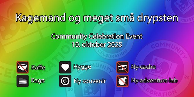 I år fylder geocaching 25 år. Det skal fejres. Jeg giver et stykke kage. Tag selv kaffe med. Og hvis du skulle få lyst til at logge en souvenirudløsende earthcache, er der mulighed for det i nærheden.