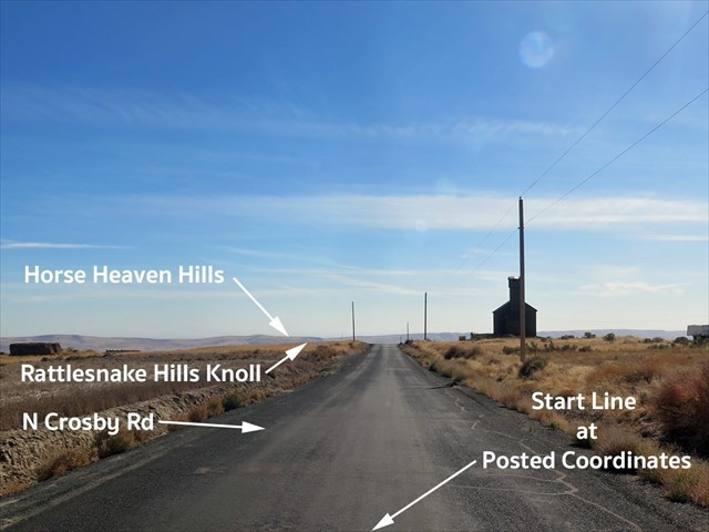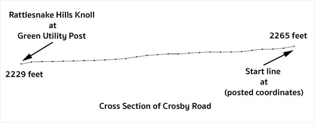 Observation: When standing at the start line (posted coordinates) on Crosby Rd looking south towards Horse Heaven Hills, the road looks like it is going uphill as in the sectional view above.