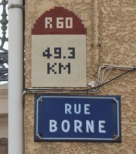 à Sète, la Rue Borne, où il a installé une borne kilométrique avec le