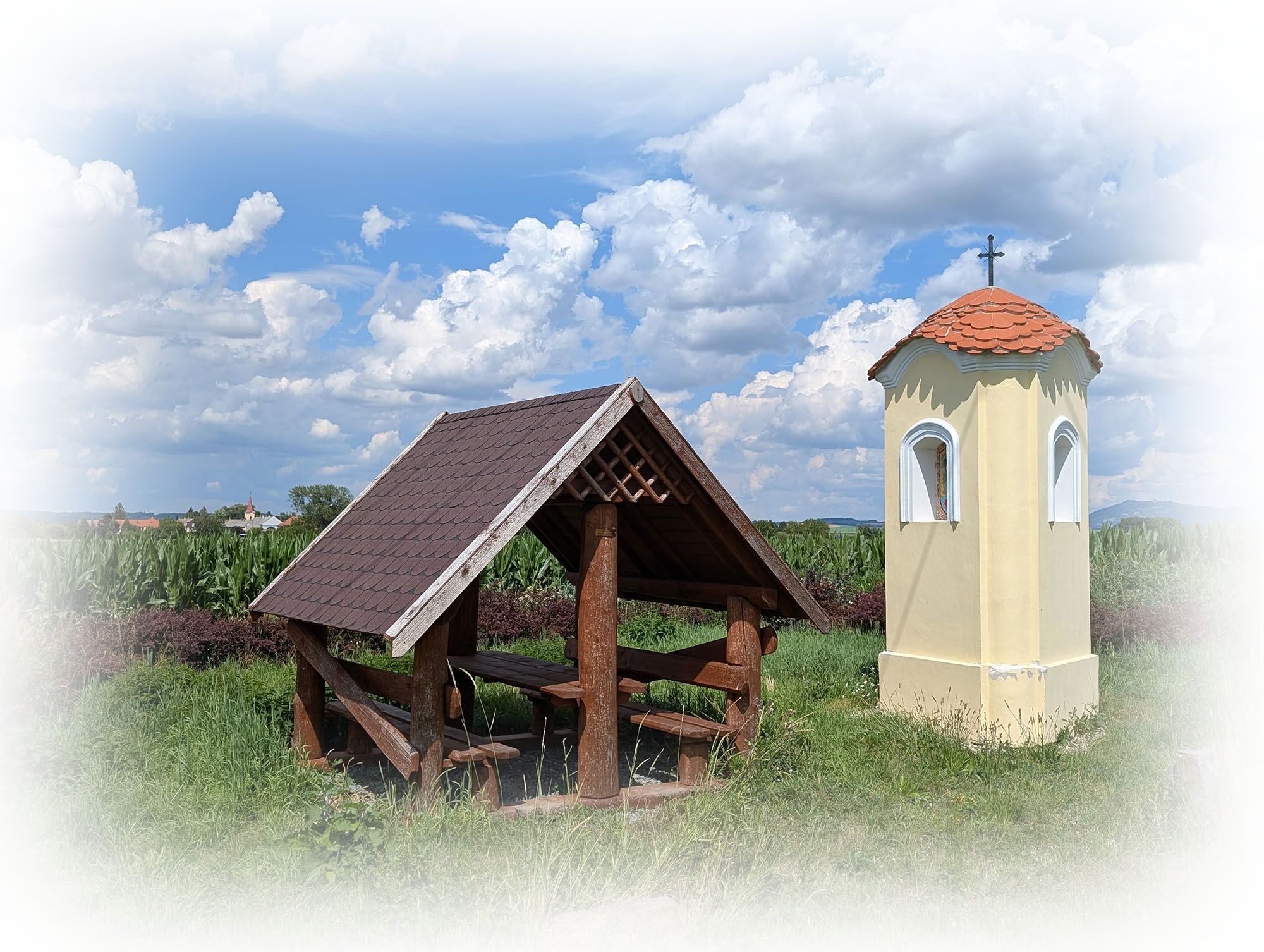 Krátká offset multikeš vás přivede k nově opravené výklenkové kapličce v polích za Třeběticemi.