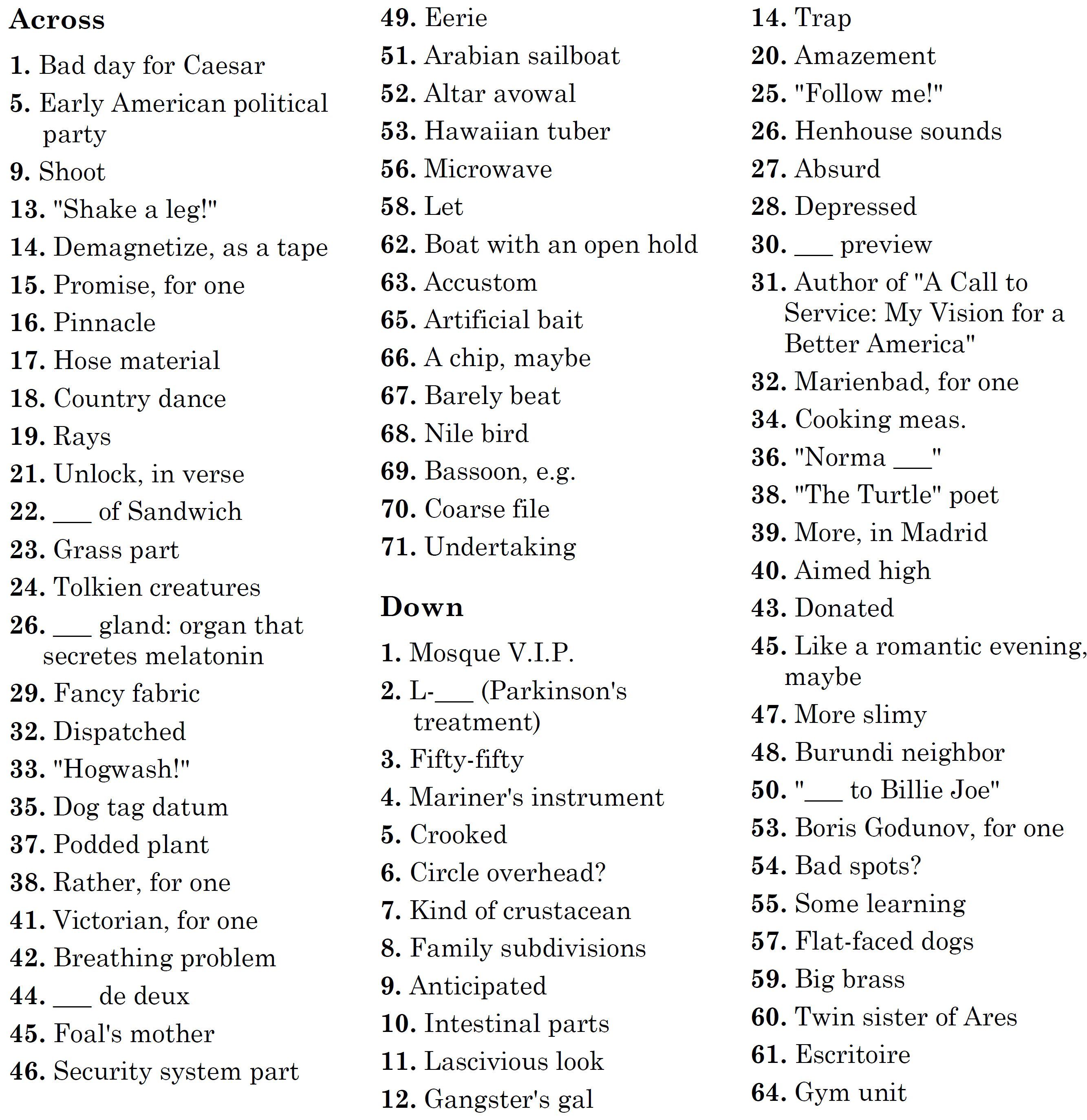 If you prefer solving the crossword on your phone or tablet or computer, I provide it here in Across Lite format. You'll still need to do the meta using the solved crossword.