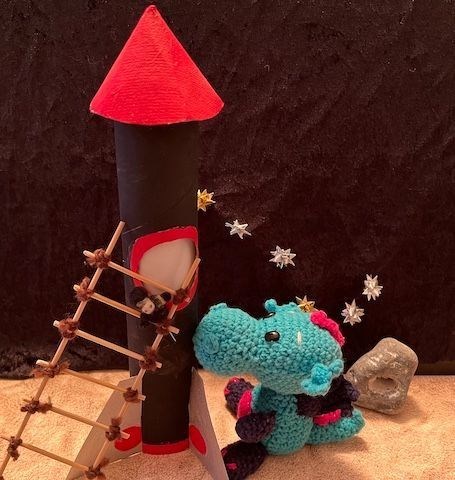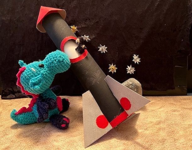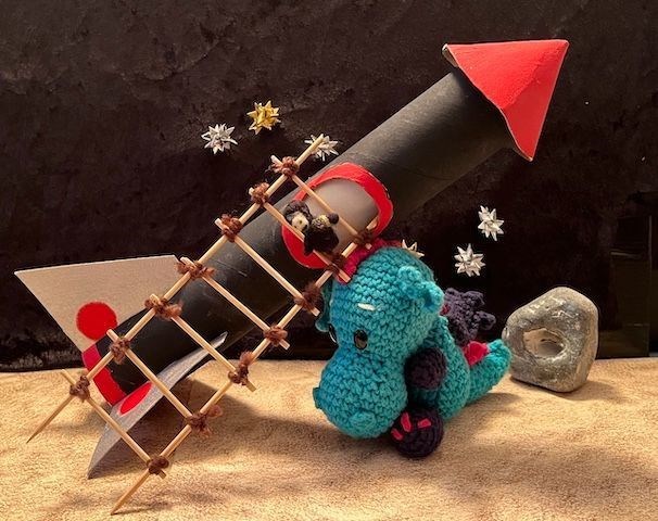 Dieses Mal steht ein Experiment zur Erstellung von Treibstoff für das eigens gebaute Raumschiff an. Wollen doch mal sehen, ob die langsame Reisegeschwindigkeit des Hüjelmobil’n zu all den Käschdosen nicht doch „ein wenig“ beschleunigt werden kann! Dazu werden in einem breiten Tiegel Lithiumbatterien mit Terpentinölersatz gefüllt. Anschließend kommt aus einem eher länglichen Reagenzglas Methanol dazu, um damit die Raketenmotoren (Version 1.4C) anzutreiben. Eine doch ganz gewaltig explosive Mischung, findet selbst der ansonsten eher sorglose kleine Schwarzpelz und trägt heute sogar vorsichtshalber seinen blauen Helm. Nach einer äußerst vorsichtigen – und natürlich rein experimentellen – Probezündung bei ungefähr genau 178,55°C liegt das erstaunliche Meßergebnis vor. Die Berechnung der Gesamtreichweite ergibt einen Flugradius, der unerwartet weit reichen würde. Theoretisch bis ins Mittelmeer, nordwestlich der Insel Lampedusa. Nur gut, dass es auf dem Rössener Hügel eine erstklassige Startrampe gibt …