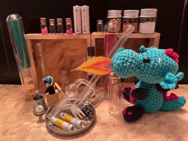 Klein-M., der Juniormaulwurf aus dem Hüjel ist ja durch seinen Hang zu allerlei Unfug, Schabernack, Mumpitz und Chaos bekannt. Gemeinsam mit seinem treuen Drachen Reginald B. experimentiert er gern in unbeobachteten Momenten im Kellerlaboratorium der Schwarzpelze. An die wiederkehrenden kleinen Verpuffungen und die gelegentlich auftretenden Explosionen, verbunden mit teilweise doch arg übelriechenden Dämpfen hat sich der Rest der Maulwurfsfamilie schon seit langem schulterzuckend gewöhnt.
