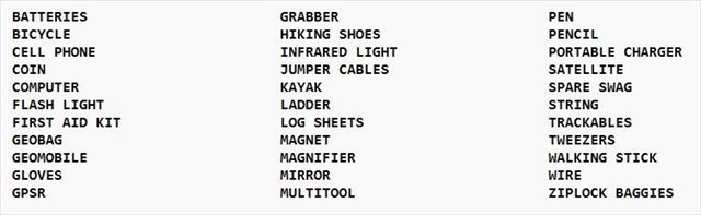 When out geocaching, you gotta have your TOTTs and more! TOTT is an acrynom for Tools of the Trade. These are items that will aid in finding and/or retrieving geocaches. Many people use many different TOTTs but below is a list of common ones, as well as other items needed for geocaching, and you will use the list to find the actual coordinates to the cache.