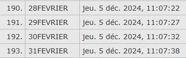 et le 29 février (tu as raison) mais aussi le 30 et le 31… étrange, mais j'en déduis que tu as testé tous les 31.