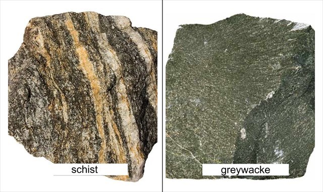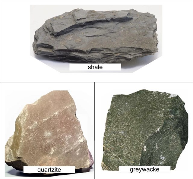 The Diale Supergroup, includes extensively folded formations, deposited after those of the Mako Supergroup, consisting of shale, greywacke, and quartzite. The shale, which is formed from compacted silt and clay, retains its fine grained texture despite metamorphism. Greywacke, which is a sandstone composed of poorly sorted sand-sized grains, suggests rapid deposition near the source rock, likely in a high energy environment such as a submarine fan (underwater deposits of sediments that form at base of submarine canyons). Lastly, there is quartzite, which is derived from sandstone subjected to elevated heat and pressure. The presence of quartzite indicates regional metamorphism strong enough to fuse quartz grains but not obliterate primary sedimentary structures.