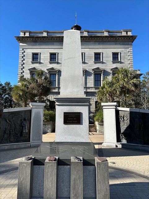 The South Carolina African American History Monument, located on the State House grounds in Columbia, commemorates the contributions and struggles of African Americans throughout the state's history. Dedicated in 2001, the monument features a series of bronze relief panels that depict significant moments, from the horrors of the transatlantic slave trade to the triumphs of the Civil Rights Movement. At its center stands a granite obelisk, symbolizing resilience and hope, surrounded by depictions of cultural and historical achievements. The monument contains 4 stones from regions in Africa where enslaved people were captured: Senegal, Sierra Leone, Ghana, and Republic of Congo. For this earthcache lesson, we will primarily be focusing on the stone from Senegal.