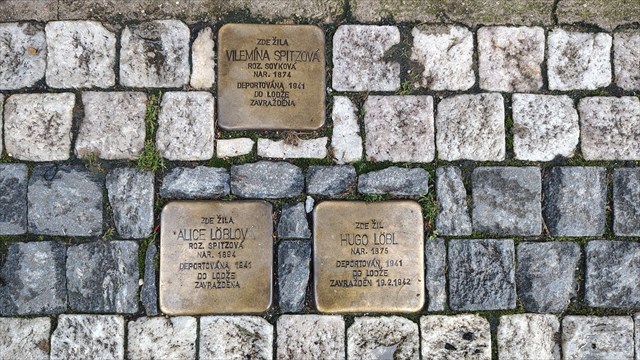 Poté vzpomeneme na Hugo Löbla, Alici Löblovou (rozenou Spitzová) a Vilemínu Spitzovou (rozenou Soyková) na jejichž památku jsou poblíž vchodu do domu v ulici Veverkova 1409/12, Praha 7 umístěny tři Kameny zmizelých.