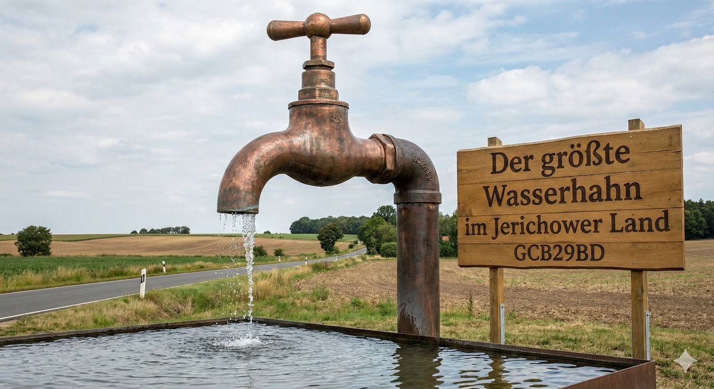 Hier kurz vor dem Ortseingang Burg befindet sich auf jeden Fall der größte Wasserhahn im Jerichower Lang oder vielleicht ganz Deutschlands ?
