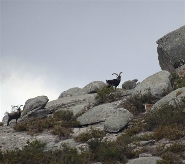 O certo é que esta zona é habitada por fatos de cabras de raça autóctone, que apreciam a deslocação para estes lugares altaneiros (Quando colocamos a cache, havia um fato no sopé da elevação).