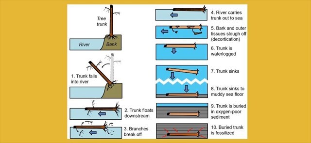 (3) Carbonization Organic material loses volatile components and remains mostly carbon.