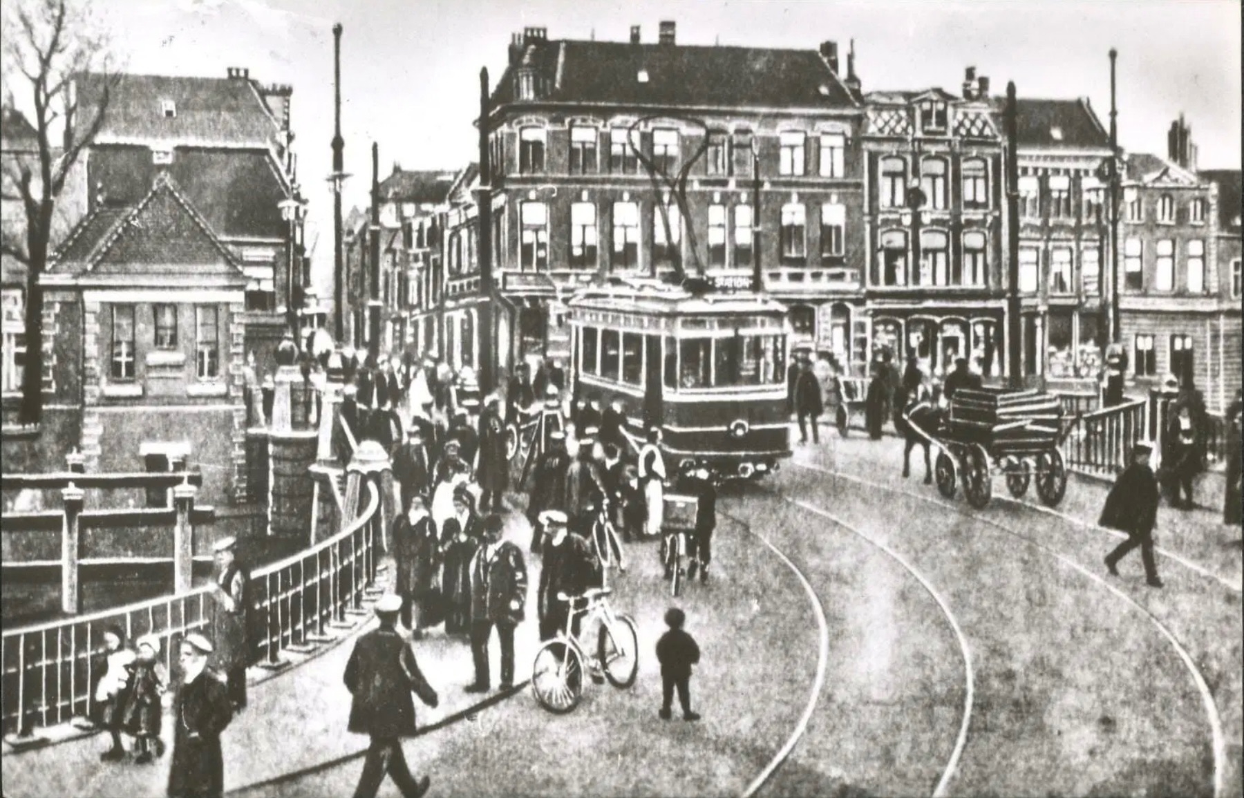 Over de oorspronkelijke brug reed een paardentram. Die brug was niet sterk genoeg voor de elektrische tram. Daarom kwam er in 1910 een nieuwe brug. De leuningen en de lantaarnpalen van de Blauwpoortsbrug zijn geïntegreerd in het ontwerp. Ook het brugwachtershuisje is geheel in stijl.