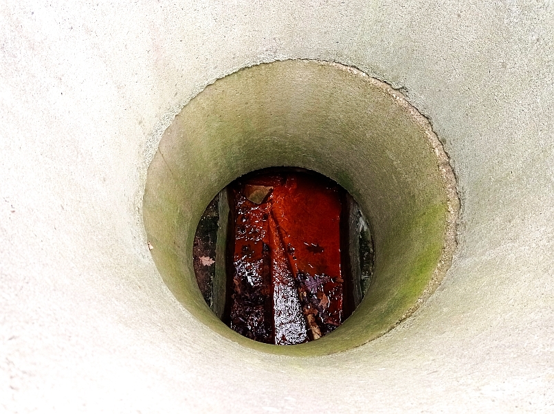 Meliorační drenáž pokračuje pod silnicí a unáší vody Větrovského potoka pod zemí až k rybníčku. My tu mocnost potoka můžeme alespoň zkontrolovat pohledem do jedné z nezakrytých inspekčních šachet nedaleko silničního propustku.