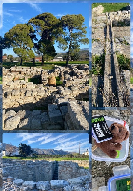 Excavations were begun at Tylissos in the early 20th century by Joseph Chatzidakis, a pioneer in Minoan archaeology. Three residental complexes were excavated, the so-called Houses A, B, and C, whose main parts are dated to the Neopalatial period (1700-1450 BC). These buildings had two storeys, hewn stonework on their facades, and their architecture shared elements displayed by the large Minoan vilas and palaces. Their interiors were luxurious, as shown by fragments of frescoes discovered in excavations. A miniature fresco done in the same style as the well-known wall painting of the crowd from Knossos is a characteristic, though fragmentary example. The city's wealth and importance are also highlighted by the finds, especially the tablets written in Linear A, the form of writing used in Crete during the Neopalatial period, as well as inscribed objects. In addition, the discovery of three enormous bronze cauldrons as well as a bronze ingot used in the manufacture of bronzes show that there were metalworking shops in the city. The discovery of various luxury items such as bronze figurines of worshippers, an obsidian rhyton, seal stones and other finds give us the impression of a city with a high standard of living. The buildings were destroyed in the major destructions that struck Minoan Crete around 1450 BC. However, there is evidence to suggest that life continued in Tylissos during the following centuries. The large circular water cistern dating to the Late Minoan Ill period (1400-1200 BC) is especially important. Around 1200-1000 BC many settements and cemeteries in Crete were abandoned and new settlements were founded at inaccessible and remote sites. Tylissos, however, was an exception, since habitation continued and it appears that a religious center developed there, whose use is traceable in the 10th, 9th, and 8th c. BC. A large altar, inscriptional testimony and finds show the city's continuity in later times.