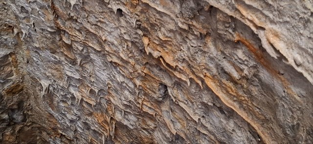 2) Pozorujte četné stalaktity na stropě tunelu a charakterizujte jejich barvu a tvar.