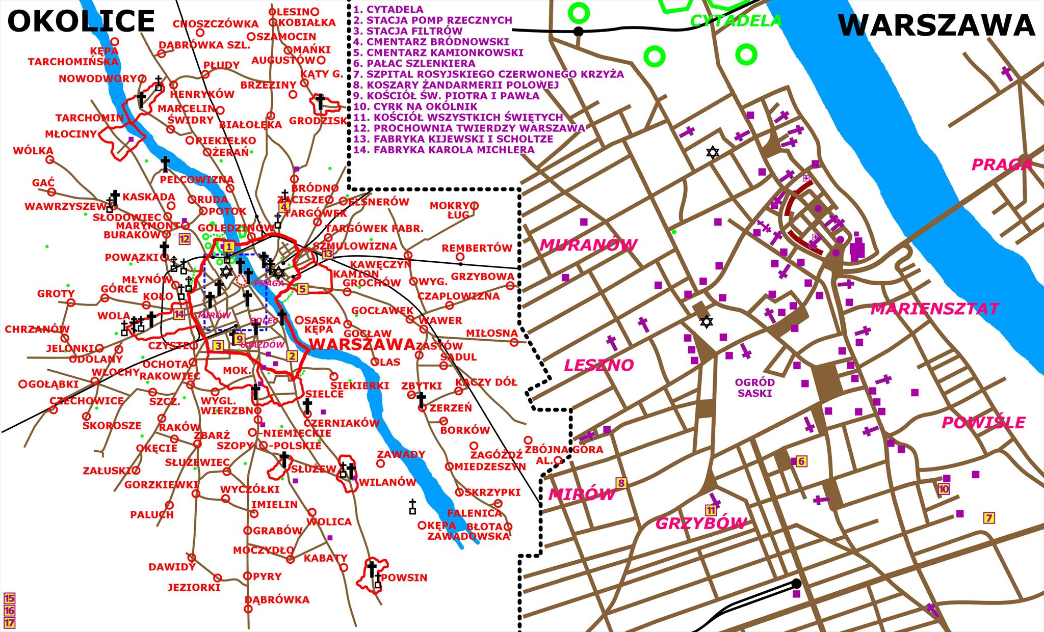 B1 => Chapel of St. Barbara | B2 => Church of All Saints | B3 => Factory of Kijewski and Scholtze