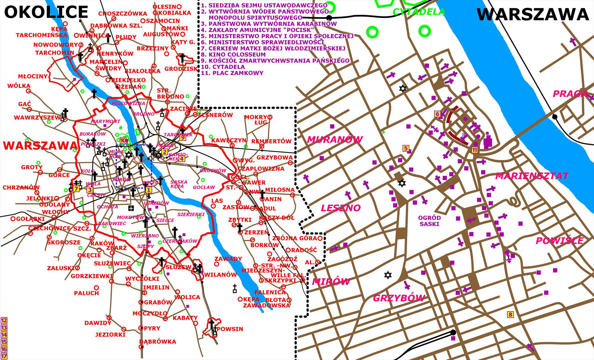 Only January 1919 showed that the road to the fully independent and stable Second Polish Republic will be difficult. An attempt of a coup, the war with Ukraine, the Greater Poland Uprising and the appointment of the government of Ignacy Jan Paderewski were only several most important events that bothered politicians. The premises of the Alexander-Maria Institute at Wiejska St. became the seat of the Polish Sejm, where on 10 February 1919 – in a room of the former Institute's cantine – the Head of State Józef Piłsudski inaugurated the first session of the parliament. All the universities were nationalized – including the University of Warsaw – and some new ones were estabilished – including the Warsaw University of Life Sciences (then known as Agricultural University). The railways wawere also nationalized, as well as the tobacco and spirit industries, including the Spirit Factory at Ząbkowska Street. Many other factories were also reconstructed – the former "Gerlach and Pulst" factory became the State Rifle Factory (1919) and the Linen and Jute Factory became the "Pocisk" Ammunition Factory (1920). Several Warsaw palaces became seats of the ministries – such as Ministry of Labor and Social Welfare in the palace "Under The Four Winds" or Ministry of Justice at Raczyńskich Palace, both at Długa Street. Reclamation of churches and monasteries began – like the Orthodox Church of Our Lady of Vladimir in Wola. Behind the Kossakowskich Palace at Nowy Świat St. the new huge cinema with 2600 seats was opened (1919), the Geological Museum (1920) and the Museum of Polish Army (1920) were estabilished, and in Targówek the new Church of the Resurrection (1920) was constructed. However, soon it turned out that the greatest enemy of the independent Poland was the Soviet Union in the east. Although the Polish Army captured Kiev in April 1920, but under the pressure of the Soviet offensive Polish soldiers begaan to withdraw faster and faster, until in August the Red Army reached Lwów, Chełm and Toruń, threatening Warsaw directly. In Wyszków the Poland's Provisional Revolutionary Committee with Feliks Dzierżyński and Julian Marchlewski were almost prepared to take over the power, but the Head of State Józef Piłsudski together with the General Tadeusz Rozwadowski developed a plan to stop the Red Army. They used an unexpected Polish success – takeover of an Russian radio station and deciphering their codes – and noticed a serious break between two Soviet armies. The breakthrough took place from 13 to 16 August – the Red Army was drawn into a massive battle between Radzymin and Ossów, and the symbol of these fights became the chaplain Ignacy Skorupka, fatally hit in the head by a bullet in the fields of Ossów. The wounded soldiers were transported to Warsaw by the Marki Railway, and from the final station the trams were used to take them to hospitals, while the prisoners were brought to the city across the Kierbedzia Bridge. In the key moment the Citadel Radio Station blocked out the Soviet stations with tthe 36-hours-long broadcast of the text from the New Testament. Finally, the "Maneuver from the Wieprz River" regained the victory to the Polish side, when the exposed rear of the Soviet Army were attacked and destroyed, what forced the whole army to flee. The war was ended with the Treaty of Riga, and Józef Piłsudski was solemnly decorated at Zamkowy Sq. with the baton of the First Marshal of Poland.