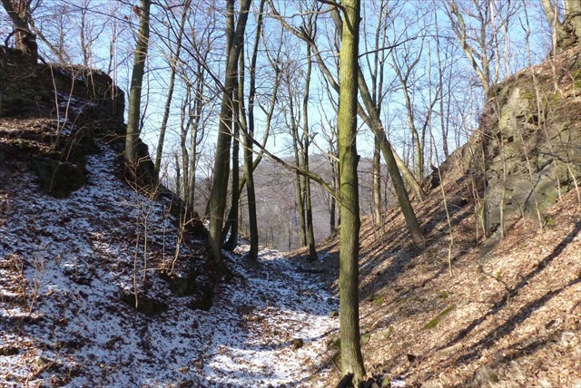 Hlavní šíjový příkop, vlevo jádro hradu, vpravo vysunutá pevnůstka