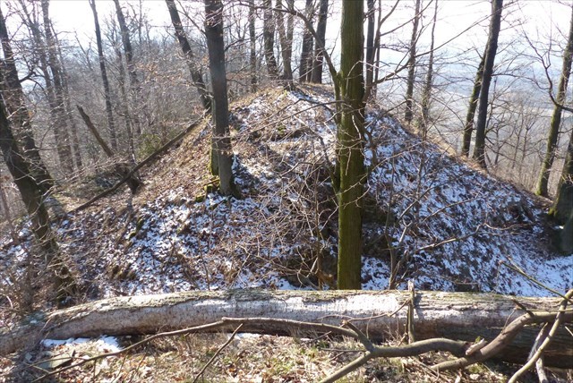 Šíje se skalním žebrem odtud pokračovala vzhůru až k zakončení v podobě samostatné pevnůstky. Toto nejvzdálenější a současně nejmohutnější předsunuté opevnění s výrazným centrálním kruhovým pahorkem se nacházelo 250 m severně od čela hradu a vlastní jádro převyšovalo zhruba o 50 m. O jeho zástavbě můžeme opět jen spekulovat. Mohl ji tvořit velký kruhový dělostřelecký objekt, nebo více objektů s dřevohlinitou baštou či věžovitým objektem v čele. Centrální téměř kruhový pahorek obklopuje ze tří čtvrtin mohutný příkop a val, který se na severu rozšiřuje a tvoří nástupní plošinu pro most, či rovněž sloužil jako dělostřelecký post. Před tímto valem je vyhlouben ještě jeden mělčí příkop. Jen na západní straně, kde je svah hřebenu nejprudší a částečně skalnatý a příroda se zde sama postarala o ochranu, příkop a val absentují. Všechna předsunutá opevnění byla zřejmě vzájemně pospojována dřevohlinitými opevněními, možná nasucho kladenou zdí, případně palisádou. Na východní straně je téměř po celé dálce vidět terénní zlom, který by mohl být pozůstatkem takové zdi a mělkého příkopu zaknečeného valem. Ze západní strany pro strmost svahu nebylo třeba takové opevnění budovat, alespoň se zde nenacházejí žádné pozorovatelné stopy, zde zřejmě postačila jen palisáda.