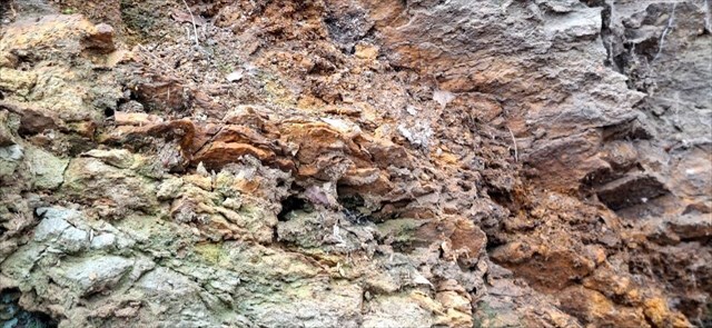 3) Na základě vašeho pozorování na místě popište, jak se liší železitý sediment od okolní horniny.