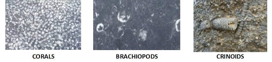 The most common fossils in Irish limestone are Corals, Brachiopods & Crinoids.