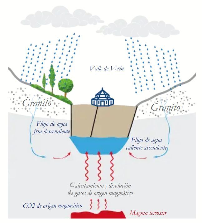 granítico, filtrándose por sucesivas capas de granito y cuarcitas.