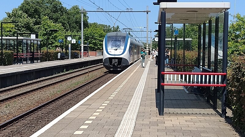 Gezicht op Station Voorhout met Sprinter, juli 2023