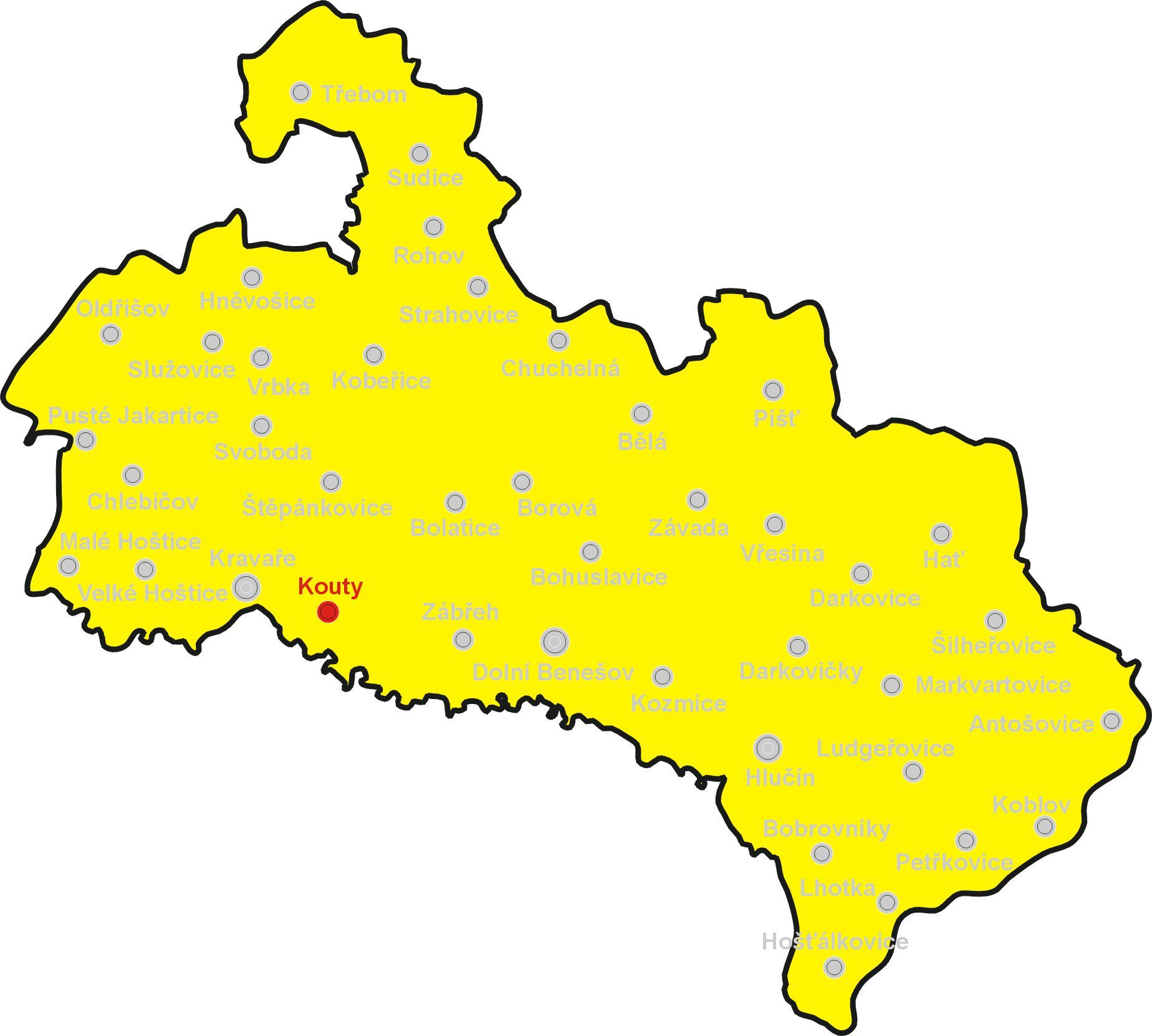 Kouty se nacházejí v jižní části Prajzské republiky. V současné době jsou místní částí města Kravaře. První písemná zmínka je z roku 1281, kdy vydal kníže Mikuláš Opavský listinu, ve které daroval městu Krnov čtyři lány lesa. Mezi svědky je uveden také Zbyslav z Koutů, v originále „Zbyslaus de Cchuth“.