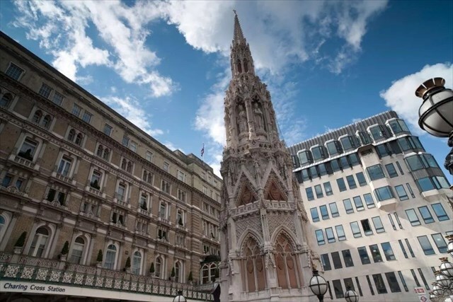 The original Queen Eleanor Memorial Cross at Charing was one of twelve elaborate stone monuments erected by King Edward I in the late 13th century to mark the nightly resting places of Queen Eleanor of Castile’s funeral procession. Located at the village of Charing, just outside medieval London, it was the most ornate of the series and stood near what is now Trafalgar Square. The original was destroyed in 1647 during the English Civil War, but a Victorian-era replica, inspired by surviving descriptions and drawings, now stands outside Charing Cross Station.